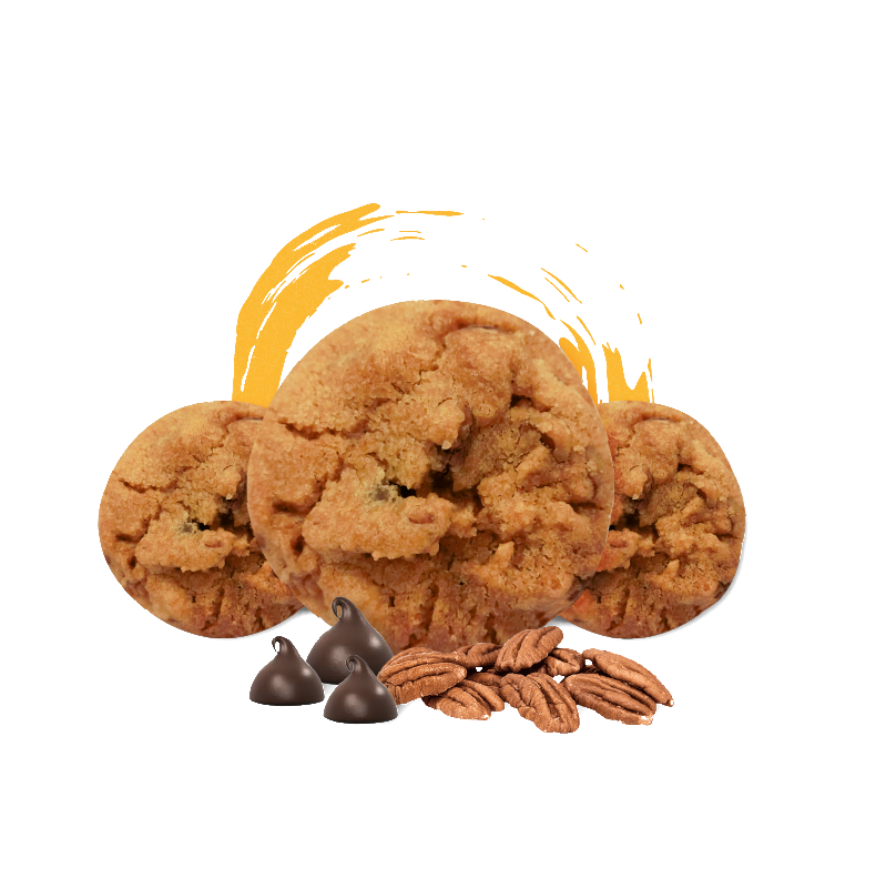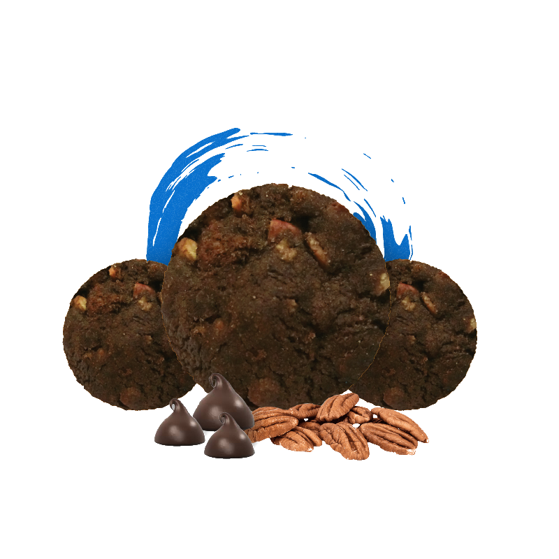 A chocolate lover's dream come true. Chocolate cookie base, chocolate chips with a crunchy mix of pecans!