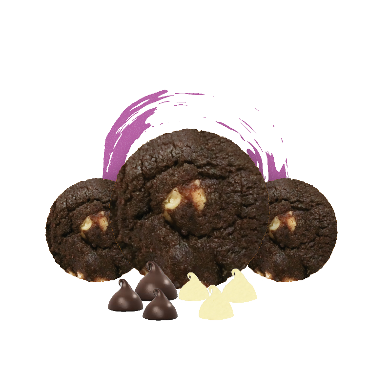 A decadent cookie flavour featuring a symphony of chocolate flavours with white chocolate chips in every bite.