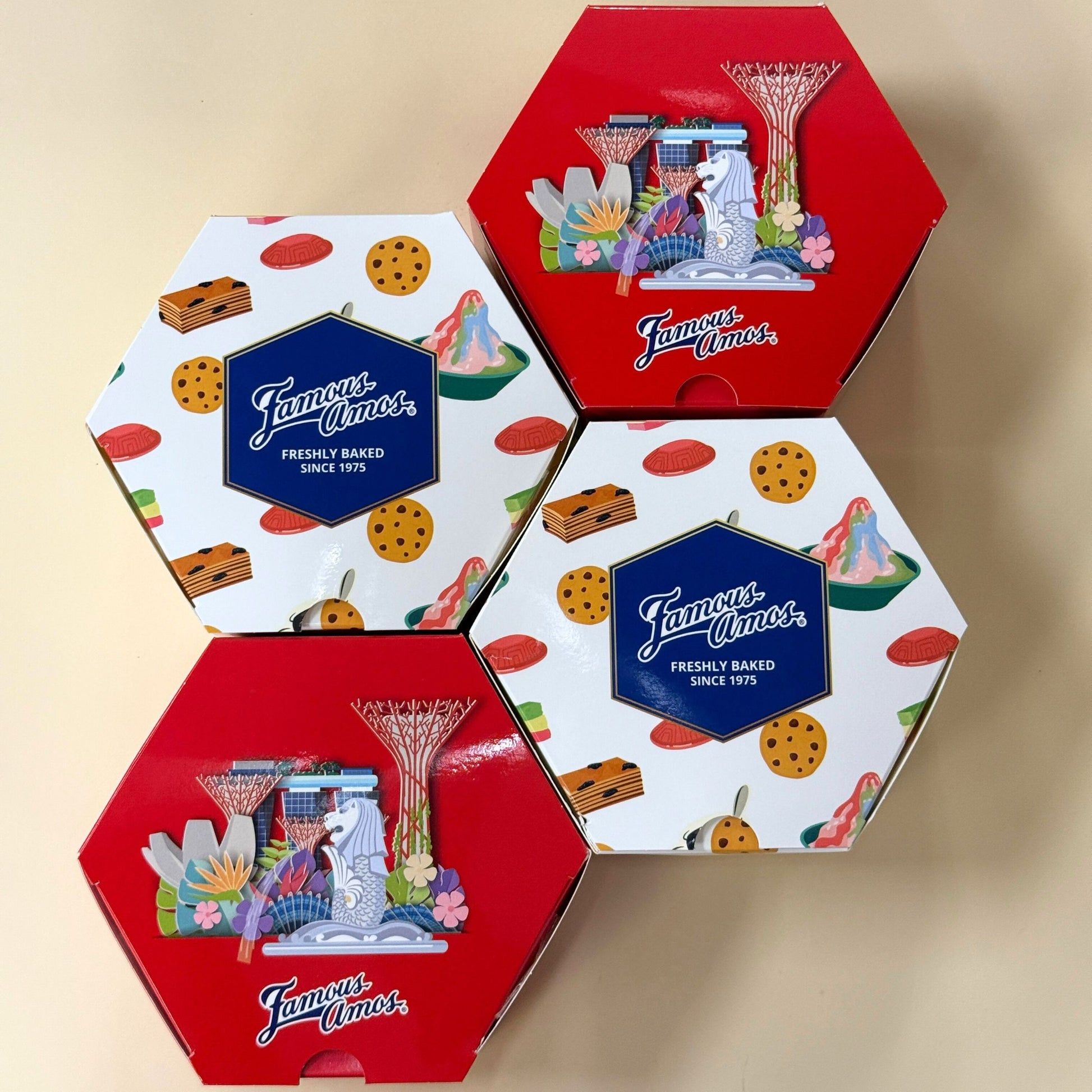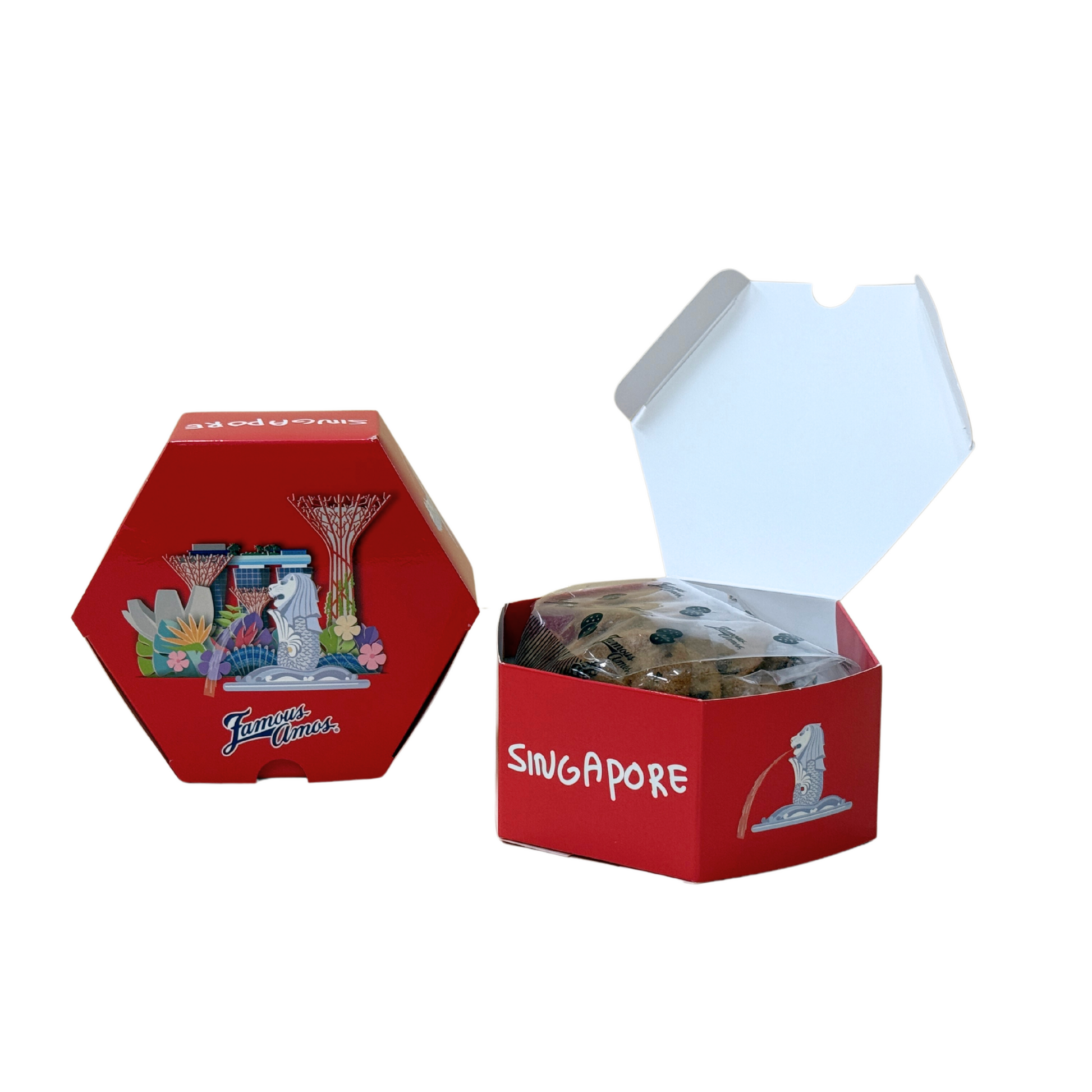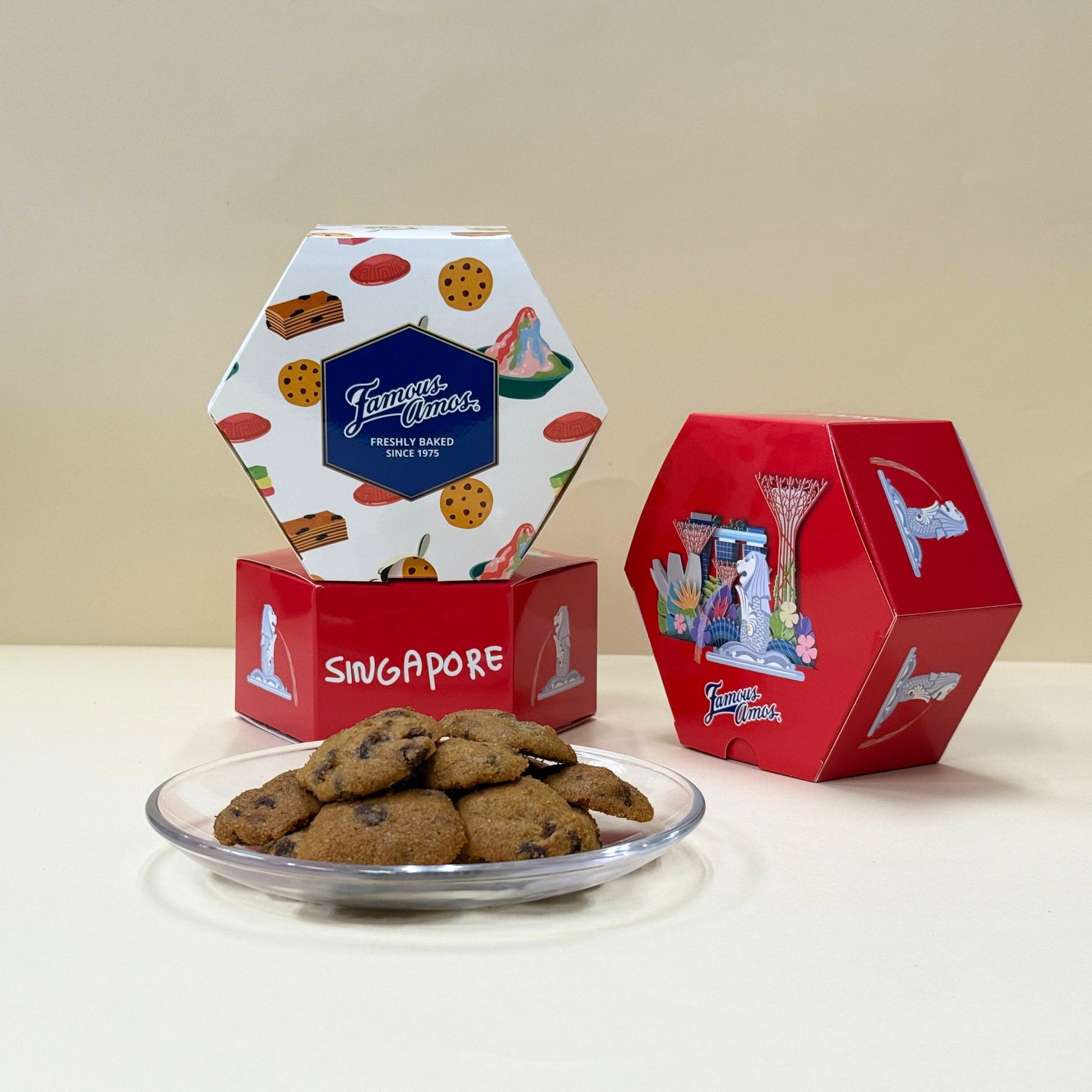 Bring home Singapore's sweetness with our Local Delights Box! Adorned with vibrant illustrations of Ice Kacang and Kueh, this charming gift box is filled with your favourite Famous Amos cookies.