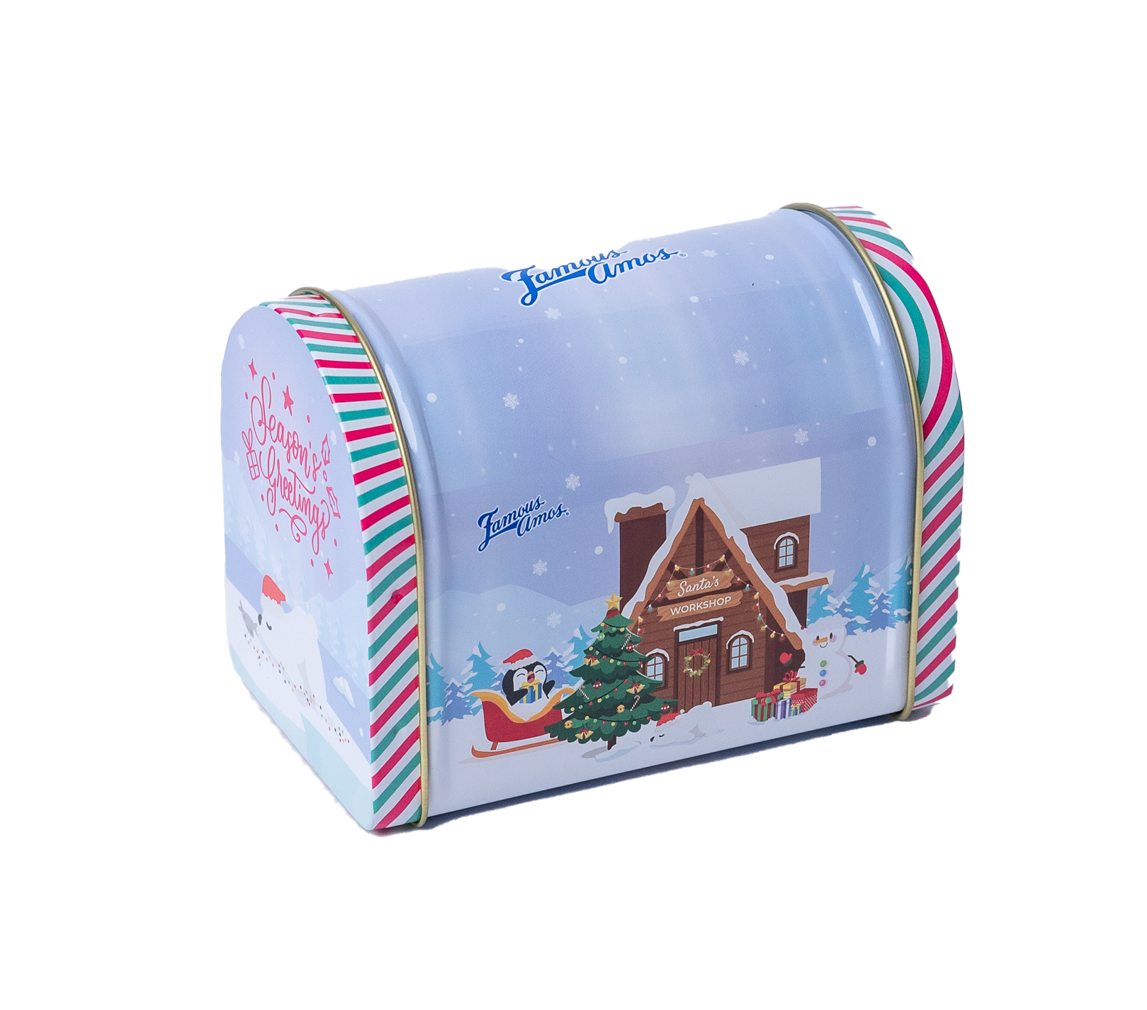 Share the festive joy when you gift this exclusive Snowy Workshop Mail Tin, filled with delicious crunchy cookies.